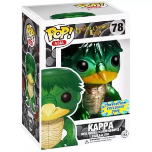 Kappa Metallic (#78) is a Funko POP! vinyl figure from the Asia category, Legendary Creatures & Myths line. Released in 2015, this rare metallic edition features the mythical water-dwelling kappa with a dazzling chrome-like sheen, intricate sculpt, and playful folklore-inspired design. It stands 4 inches tall and shines as a sought-after item for collectors fascinated by Japanese mythology.
